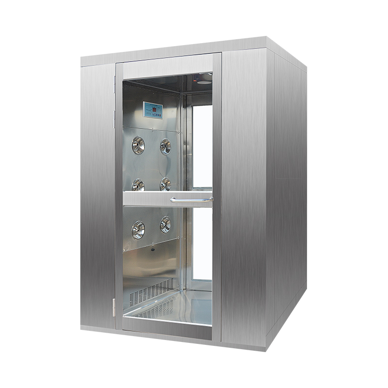 描述:风淋室内的空气由风机的作用经初效过滤器进入静压箱,经空气过滤器过滤后,洁净空气从风淋室的喷嘴喷出,喷嘴角度可调节,可吹除人特或携带物品表面附着的尘埃,吹下的尘埃再回收进入初效空气过滤器,如此循环可以保持洁净。