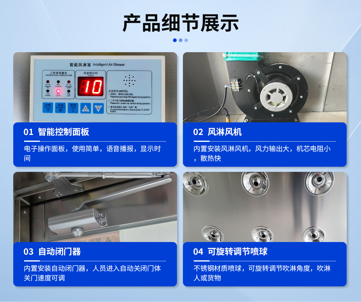 描述:风淋室(AIR SHOWER)又称为风淋,洁净风淋室,净化风淋室,风淋房,吹淋房,风淋门,浴尘室、吹淋室,风淋通道,空气吹淋室,适用于各类净化车间。