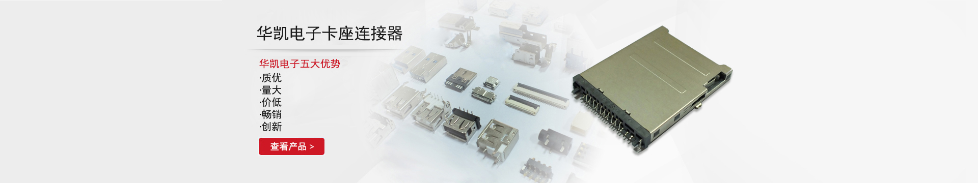 鄱陽縣華凱電子科技有限公司位于鄱陽縣城北工業園區,成立于2008年06月,主要經營塑膠五金制品、電腦連接器、連接線、儀用接插件、電腦周邊設備生產及銷售。公司成立以來,一直奉行“客戶至上,追求質量”的宗旨,貫徹“質優、......